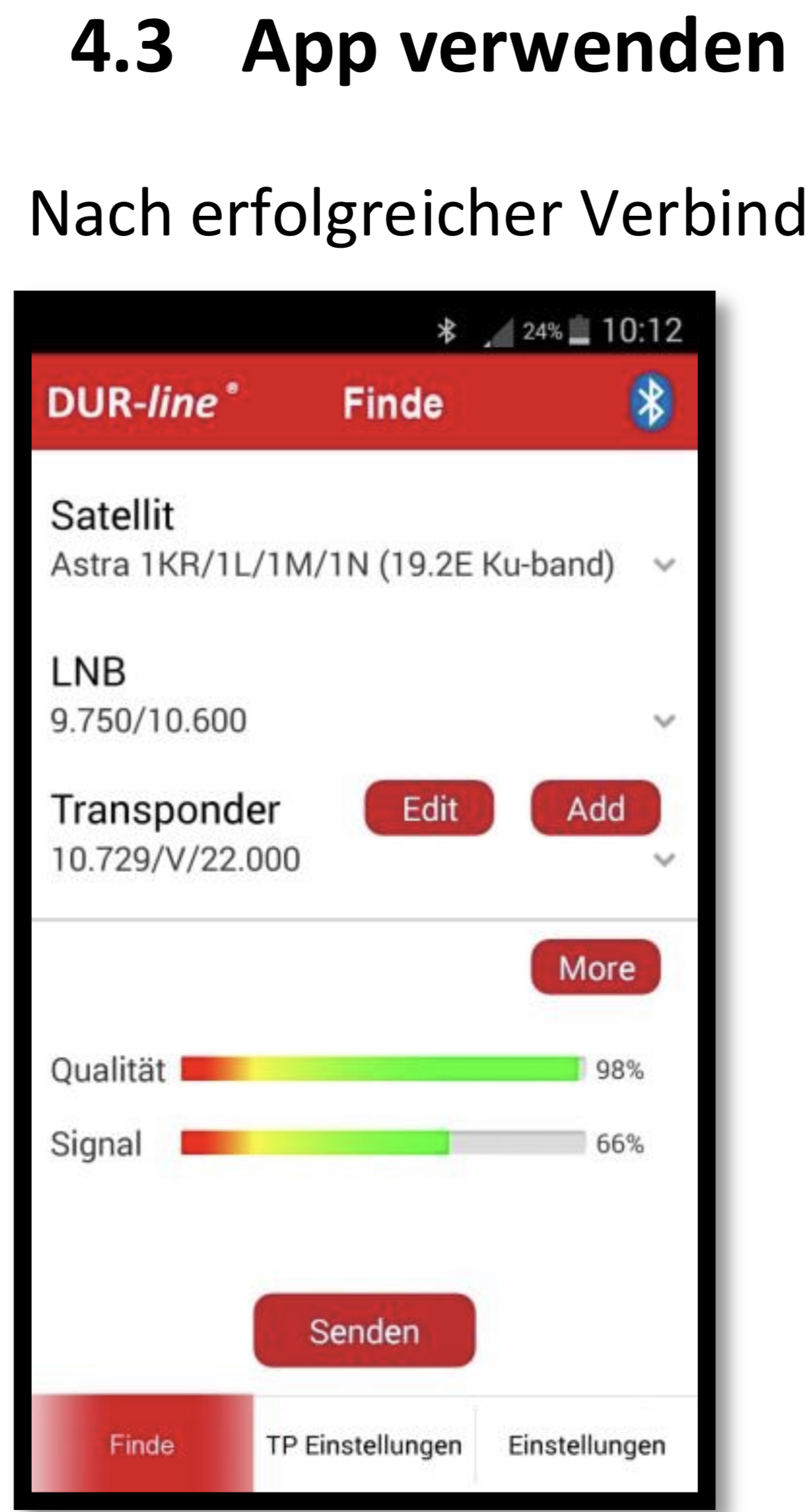 Ich weiß, dass man zunächst einmal den Neigungswinkel einstellen muss. Für meinen Standort ca. 30 Grad. Der war richtig gestellt. Der Rest soll sich dann durch Rechts- und Linksbewegungen ergeben. Leider ergebnislos. Ich habe eine ganze Stunde alles probiert. Während sich die Signalstärke verändert und ich diese auf 100 % stellen konnte, tut sich bei der Qualität rein gar nichts. Selbst in der Handy App zum Satfinder kein prozentualer Ausschlag.