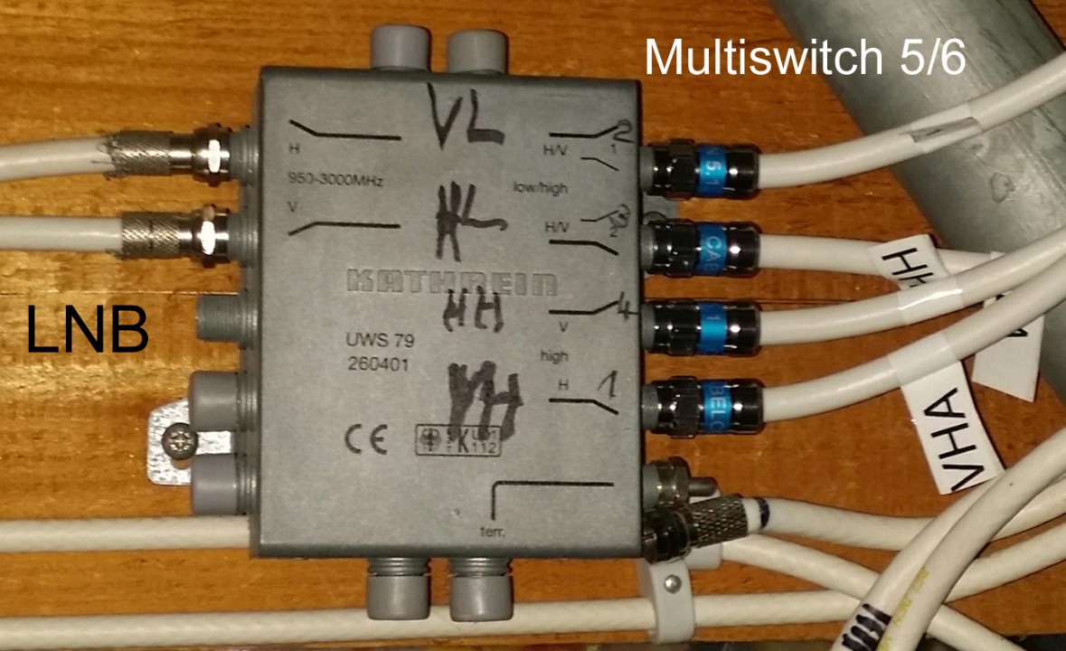 --> Leitungen zu den Recievern (Legacy und zum DD Octopus sowie zum (vorerst einzigen) Quattro LNB liegen bereits vor.