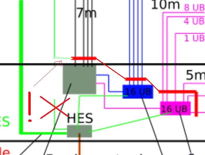 Sie hatten das PA-Kabel 4mm² (vom Mast-nahen PA kommend) auf die HES eingezeichnet ! Das ist falsch, das muss auf den Erdungsblock 17-fach gelegt werden ... siehe meinen Bildausschnitt, habe das mal korrigiert darin. Auch habe ich die 3 Erdungsblöcke in ihrer Zeichnung mal "verbunden", das ist ja nur einer ....