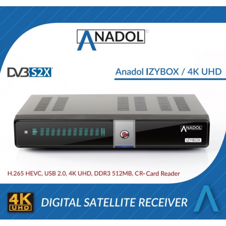 Der Satelliten Receiver ANADOL IZYBOX 4K, der neuesten Generation, ermöglicht den Empfang von SD- HD- & 4K UHD Sendern zu einem ausgezeichnetem Preis-Leistungs-Verhältnis.