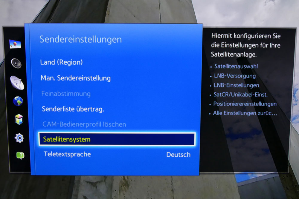 Hallo, ihr habt hier eine tolle Erklärung erstellt allerdings habe ich das Problem, dass bei meinem Samsung UE46F6500 unter dem angegebenem Menü die Option --SatCR/Unicable-- gar nicht angezeigt wird