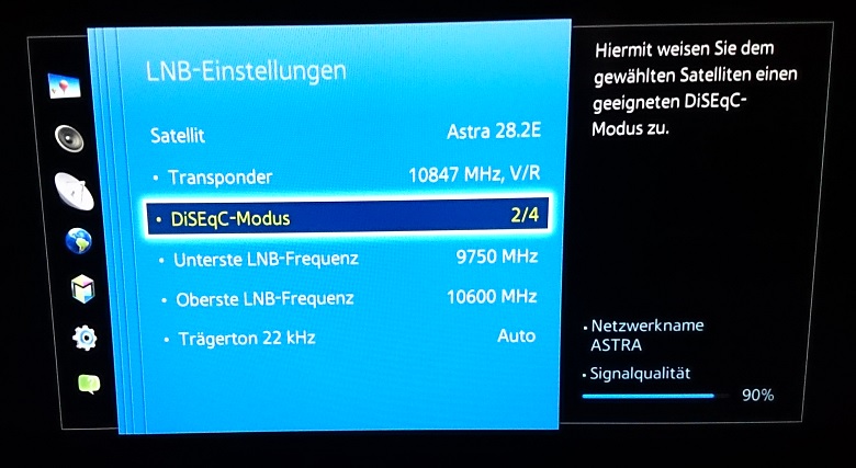 Re: Anleitung zum Einstellen eines SAMSUNG-Fernsehers auf Unicable (EN50494 / Einkabel)