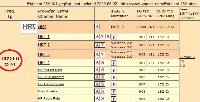 Die HRT-Programme sind auf dem gleichen Transponder wie auch "die anderen" Programme (Europe B Beam).