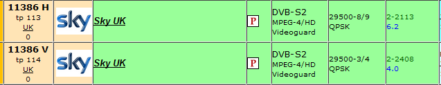 11386 V DVB-S2 29500-3/4 QPSK => geht mit 70% Empfangsqualität (ist aber auch UK Beam)