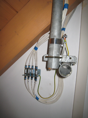 Aktuell (seit 2001) ist ein elcon Multiswitch CSL 5/10 im Einsatz, die Dosen, bei denen momentan ausschließlich Radio verwendet wird, hängen nur an einem Hirschmann VFC 1061 SAT-Verteiler.