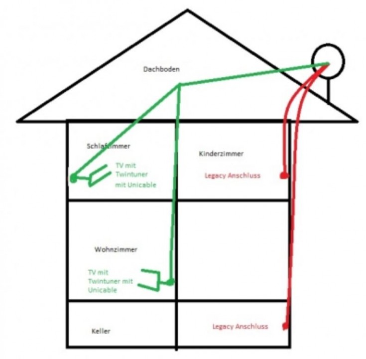Ich habe mal versucht mit Paint eine Zeichnung zu machen. Dort wo Unicable hin soll sind jetzt schon "normale Antennendosen" direkt vom LNB mit Legacy Anschluss angefahren.