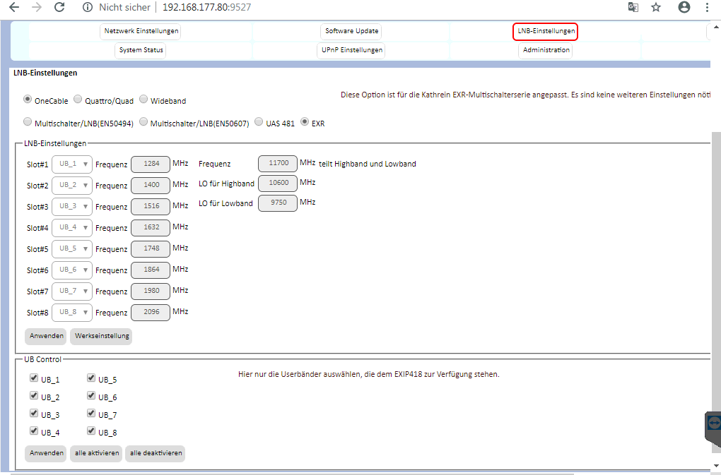IM EXIP 418 wird in der Weboberfläche auch angezeigt welche Satellitenposition (A oder B) er nimmt mit welche Frequenz etc.. Aber leider ist bei Signalstärke und signalqualität 0 vorhanden.