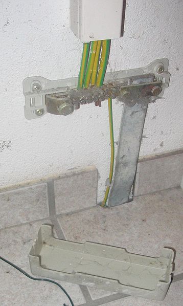 die sind auf einer Schiene, diese Schiene ist an einem dickeren grün/gelb, dieser ist an einem noch fetteren im Hauptkasten und dieser widerum an der Erdung