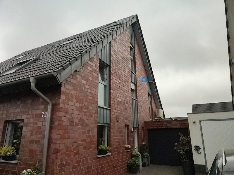 Doppelhaushälfte Baujahr 2005, 2023 auch elektrisch modernisiert, Firsthöhe 10 m, angebaute Garage. Kein äußerer Blitzschutz vorhanden, eine alte SAT-Schüssel, neuerdings ein Alu-Wintergarten und eine PV-Anlage (durch Elektrofirma).