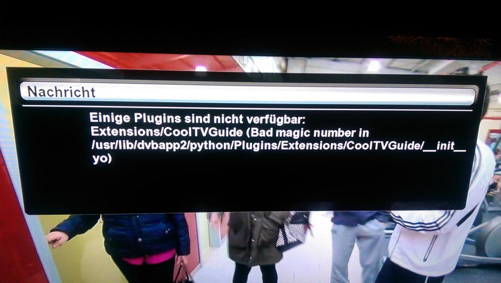 Nun bekomme ich diese Fehlermeldung: siehe BILD, und zwar wenn ich verzweifelt in der Menüstruktur irgendwo (leider weiß ich den genauen Pfad nicht mehr) nach CoolTVGuide suche.