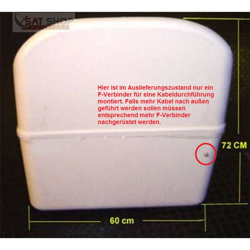 Weiterhin denke ich da gerade an eine andere Sache.... wenn sie ein Octo-LNB oder auch den 5/8 Multischalter IN der Antenne montieren dann müssen sie mit allen 8 Kabeln zu den Teilnehmern aus der Antenne heraus fahren. Da aber im Auslieferungszustand nur eine Kabeldurchführung durch den Antennen-Cubus montiert ist (siehe Bild Anlage) müssen die fehlenden 7 Stk. selbst hergestellt werden. Das ist nicht schwer, man muss einfach 7x F-Verbinder dazu montieren (kleines Loch bohren + F-Verbinder rein + mit der Überwurfmutter fixieren). Man kann es bei Nutzung eines Multischalters aber einfacher machen und damit ggf. auch unnötige Kabel von der Antenne bis zum Haus einsparen. Von einem Quattro-LNB bis zum Multischalter werden ja nur 4 Kabel benötigt, daher wäre es hier möglich den Multischalter auch weiter weg von der Antenne zu montieren (Keller etc. im Haus) und erst AB DORT dann die einzelnen Abnahmeplätze anzufahren.... wenn das möglich ist von der verlegten Kabelstruktur her könnte man Kabel + F-Verbinder für die Cubus-Kabeldurchführungen einsparen.
