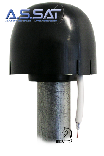 Damit kann man jetzt die Antennenkabel durch den Mast hindurch zur Antenne/zum LNB nach außen verlegen, dafür wird eine Mastkappe mit Kabeldurchführung benötigt.