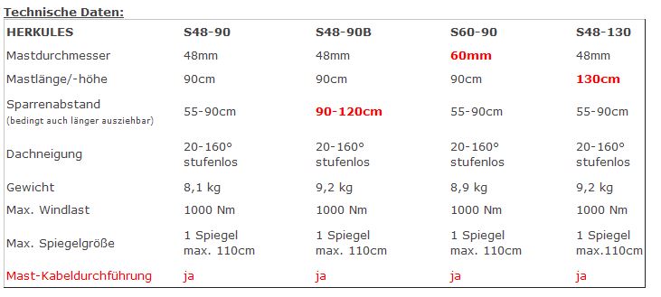 Marke: Dachsparrenhalterung Herkules S48/900 - E48/90 - S48/1300 - S60/900 - S60/900 XL - E48/900B - S60/900XXL - S60/1800XXL - Herkules D4