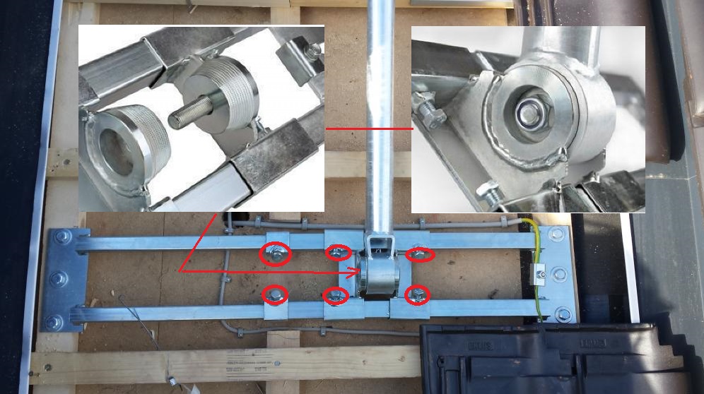 -Dank des schmalen Konus am Mast ist der Halter für alle auf dem Markt gelieferten Dacheindeckungen ideal geeignet.