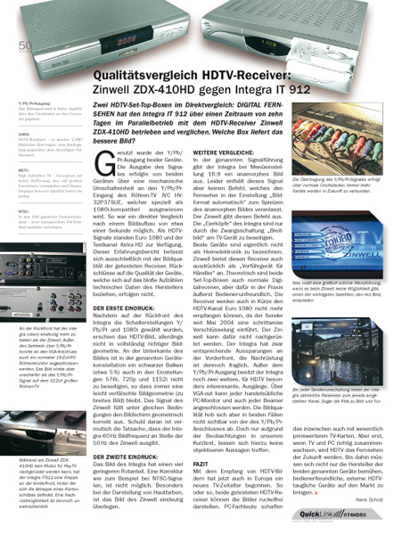 Bereits seit Mitte der achtziger Jahre des vergangenen Jahrhunderts wird mit HDTV herum experimentiert. Im Jahre 2004 wurden erste Satellitenreceiver vorgestellt, welche den Empfang digitaler HDTV-Signale in Europa erlaubten. Der HDTV-Enthusiast der ersten Stunde, der langjährige Forenuser Hans Scholz alias Scholli nahm für die Ausgabe 07/2004 gleich zwei dieser Boxen einmal genauer unter die Lupe.