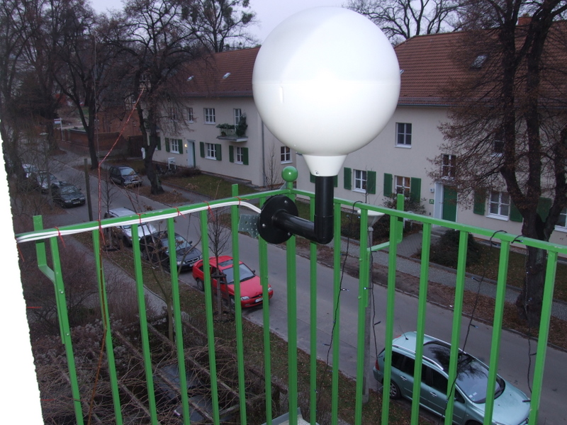 Die DigiGlobe zeigt beabsichtigt nach innen, da meine Argumentation gegenüber dem Vermieter eine Beleuchtung wäre - und die Hauswand anzuleuchten mag andere Nachbarn stören...