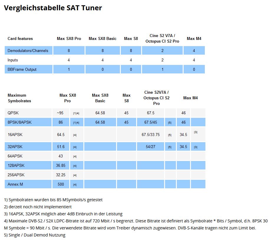 S/S2/C/C2/T/T2 Tuner sind verfügbar