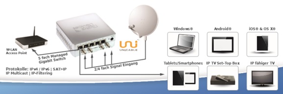 SAT>IP für 4 Teilnehmer (erweiterbar durch Kaskadierung)