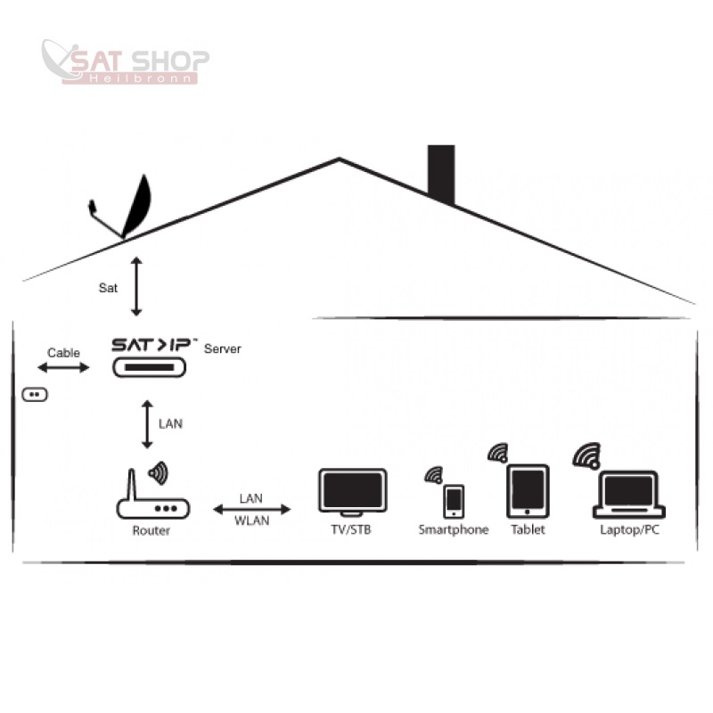 SAT>IP/Kabel>IP für 8 Teilnehmer (erweiterbar durch Kaskadierung)