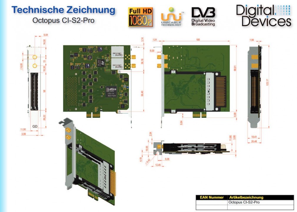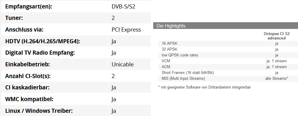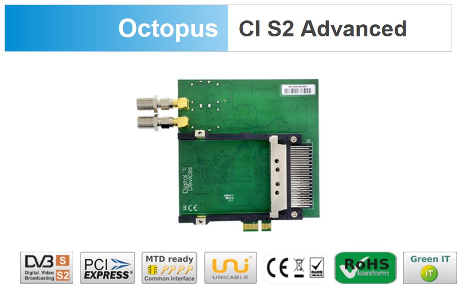 Digital Devices OctopusCI S2 Pro Advanced Twin DVB-S2 UHD / 4K (PCIe Slot / Twin-CI Slot / Unicable EN50494 / JESS EN50607)