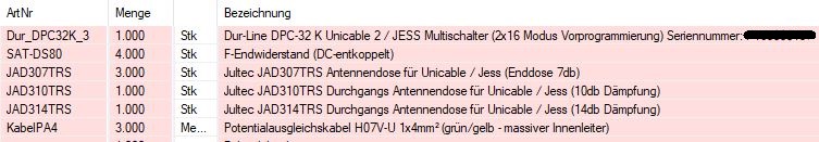 4 Dosen => Jultec JAD318 (Durchgangsdose mit 18db Auskoppeldämpfung) > JAD314 (Durchgangsdose mit 14db Auskoppeldämpfung) > JAD310 (Durchgangsdose mit 10db Auskoppeldämpfung) > JAD307 (Enddose mit 7db Auskoppeldämpfungweissnix hat geschrieben:Ich möchte eine Unicable-Anlage aufbauen, sechs Dosen, variabel zu nutzen. Ich Rechne damit, dass die Anzahl der JESS-tauglichen Geräte noch steigt. Bis dahin eben die 'normalen' unicable Teilnehmer.