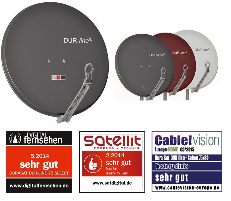 Der neue DUR-line 75/80 Select ist in Design, Ästhetik und Qualität ein auf den neuesten Stand der Technik entwickelter SAT Spiegel. Höchste Ansprüche wurden bis ins kleinste Detail verwirklicht. Reflektor 75x80cm. Erhältlich in 3 Farben