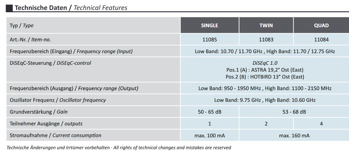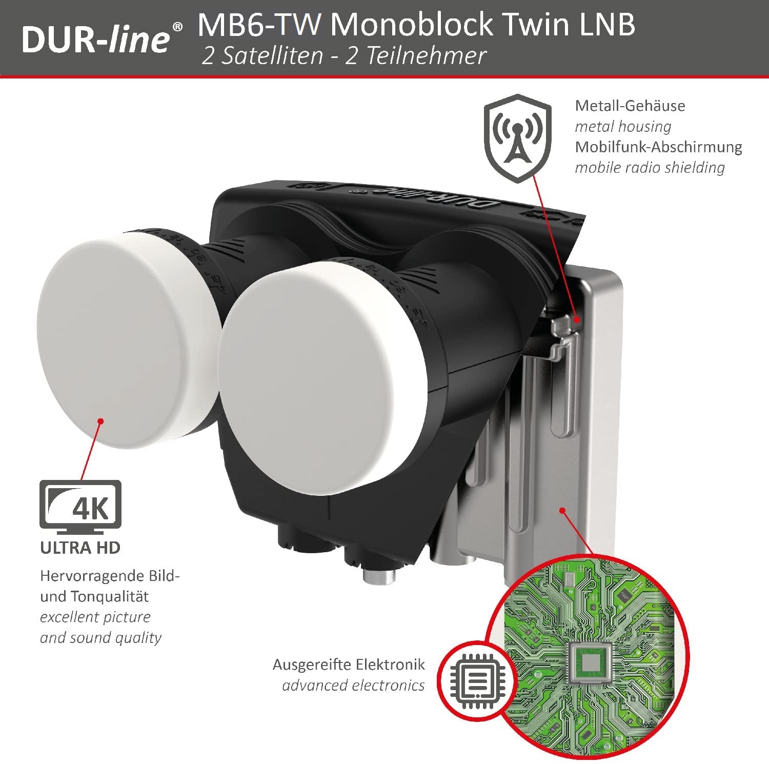 Dur-Line MB6-US (Single), MB6-TW (Twin) + MB6QS (Quad) Monoblock LNB (6 Grad Abstand)