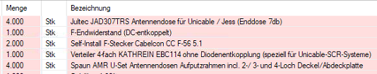 Was für ein "Warenkorb" ? Meinen sie einen den sie im Shop jetzt online erstellt haben oder eine Bestellung die sie auch versendet haben schon (i.d.R. Ware die sie schon bestellt haben) ?pringer hat geschrieben:Hallo ich habe in meinen Warenkorb antennendosen erfasst