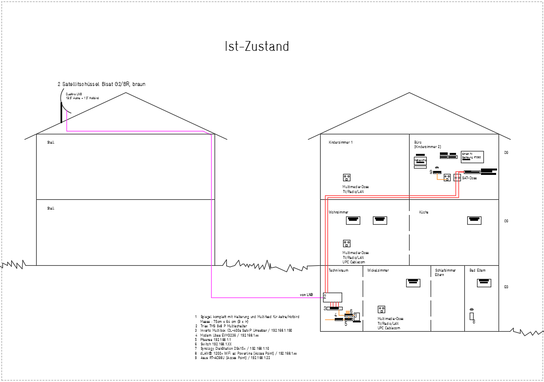 Achtung ! Einen Fehler in ihrer Zeichnung gefundenmisaal hat geschrieben:Der Anschluss im EG im TV-Zimmer Eltern muss ich da 1 oder 2 Koaxialkabel ziehen? Von der Dose bis zum Receiver 1 Kabel(?)