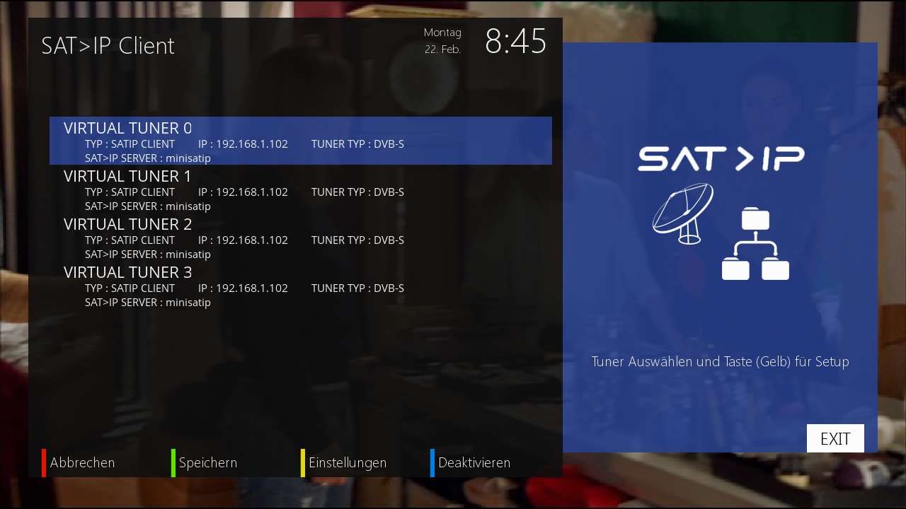 Dort wo sie die Einstellungen vorgenommen haben, das hat mit Sat>IP nichts zu tun ! Das ist nur für die Einstellungen für den Standard Sat-Empfang über diese Tuner.