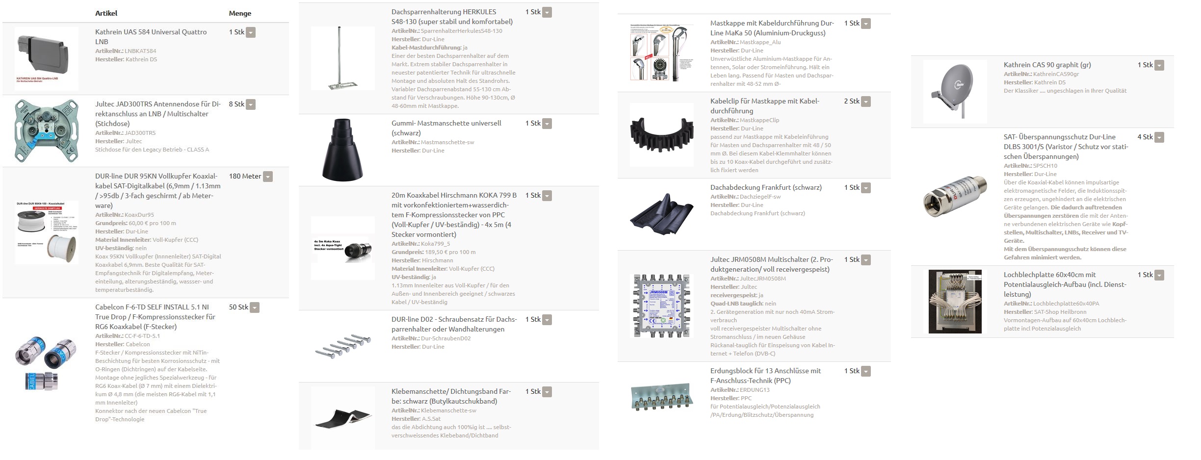 Kathrein, sehr gut ... aber auch sehr sehr teuer ! Meiner Meinung nach nicht notwendig, da gibt es Material (Antennen + LNB) das sehr gleichwertig zum drittel Preis zu haben ist ....