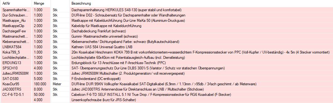 P.S. das Koaxkabel musste ich ihnen "abgerollt" von einer 500m Spule liefern, die 100m Spulen (normale wäre so eine gekommen + 80m abgerollte Meter nur) sind aktuell ausverkauft und kommen auch erst wieder in 3-5 Wochen. Aktuell eine faast normale Situation leider, sehr sehr vieles ist ausverkauft und hat lange Lieferzeiten.