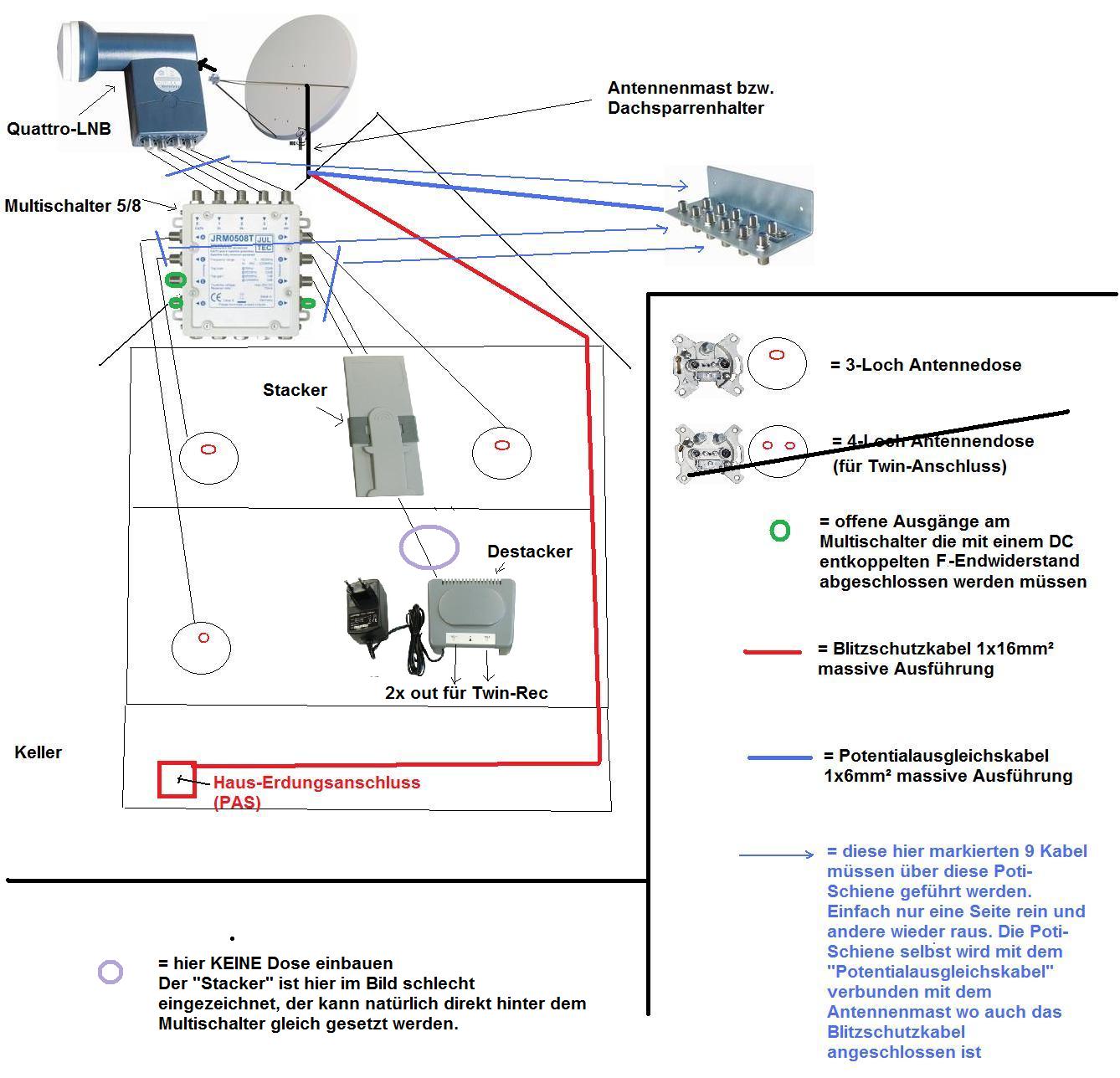Weiterhin müssen sie auch den Multischalter ansich nicht einem Potentialausgleich unterziehen, diesen alle nicht mit 6mm2 verkabeln. Schaden kann es natürlich nie.