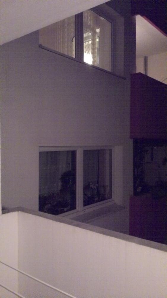 Der Balkon selbst ist innenliegend und befindet sich im dritten und letzten Geschoss eines Flachdach-Gebäudes. Anliegend (90° versetzt zu sehen in Bild 2) befindet sich zudem ein Gebäude mit fünf Geschossen. Der Plan sieht vor, die Selfsat an einem Ständer mit 1 Meter Mast in eine Ecke des Balkons zu stellen, da das "Geländer" selbst gemauert ist und ich soweit keine andere Möglichkeit sehe (Bild 3, wobei der Besenstiel ca. den Mast des Ständers abbilden soll). Ich frage mich, wie es sich hier mit dem Blitzschutz verhält. Der angeführte Außenabstand von 1,5 Meter ist durch die innenliegende Montage wohl unproblematisch. Nur wie sieht es mit dem Abstand zur "Dachrinne" aus? Sofern man die sichtbare Verkleidung (Bild 4) am Dach als "Rinne" betrachten kann ... habe ich mit ca 10° Neigung (... um die Oberkante des Balkons herum) einen Abstand von 2,30m zur Oberkante dieser Verkleidung gemessen. Die Unterkante der Dachverkleidung wäre bei Aufstellung ca 2 Meter entfernt. Die Aufstellposition selbst wäre jedoch aus meiner Sicht ja völlig "innerhalb" der Gebäudemauern ... gilt das ganze daher überhaupt ... oder sollte ich den Gedanken lieber schnell wieder verwerfen?