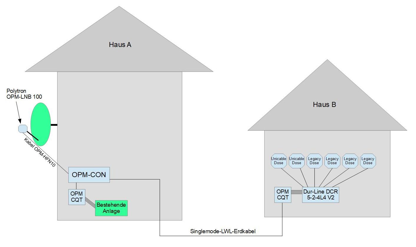 Die bestehende Anlage dort (mit Quattro Multischalter) soll dann mittels Polytron OPM-CQT wieder angebunden und weiter genutzt werden: