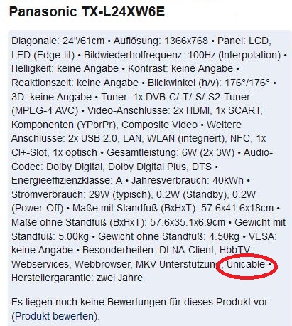 )... auch der Panasonic DMR-BST730 und der Panasonic TX-L24XW6E stehen im Netz als unicable-tauglich" beschrieben.... ggf. noch einmal in der Anleitung genau nachlesen bzw. im Antennenmenu vom Gerät nachschauen ob dort etwas drüber genannt ist (kann dort auch anders benannt sein als "Unicable", z.B. mit "Einkabel", "EN50494", "SatCR", "SCR"...).