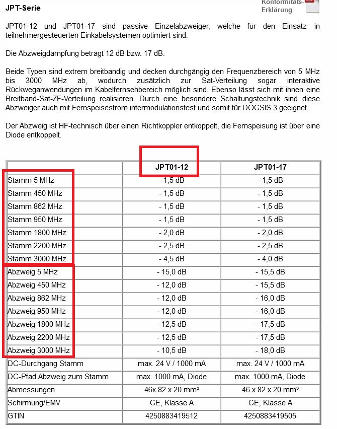 Geht es darum das dieser JMS den Frequenzbereich von Breitband-LNBs nicht unterstützt (290-2340 MHz) ? Dann ist es richtig das man dafür die JPT01-12 verwendet für diesen Aufbau, steht auch in der Produktbeschreibung so drin.