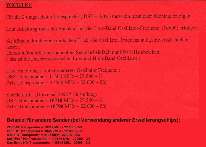 - Erweiterungs-Modul HDTV Transponder Astra 7 + 11