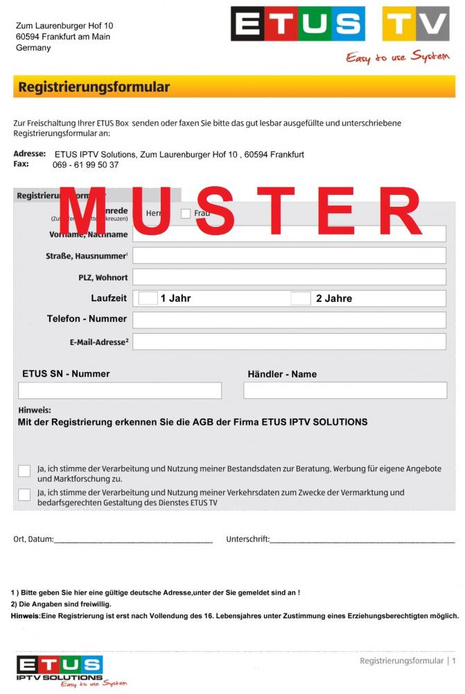 3. Mit ETUS-Formular registrieren lassen über ihren Händler (siehe Anmeldeformular in der Anlage)