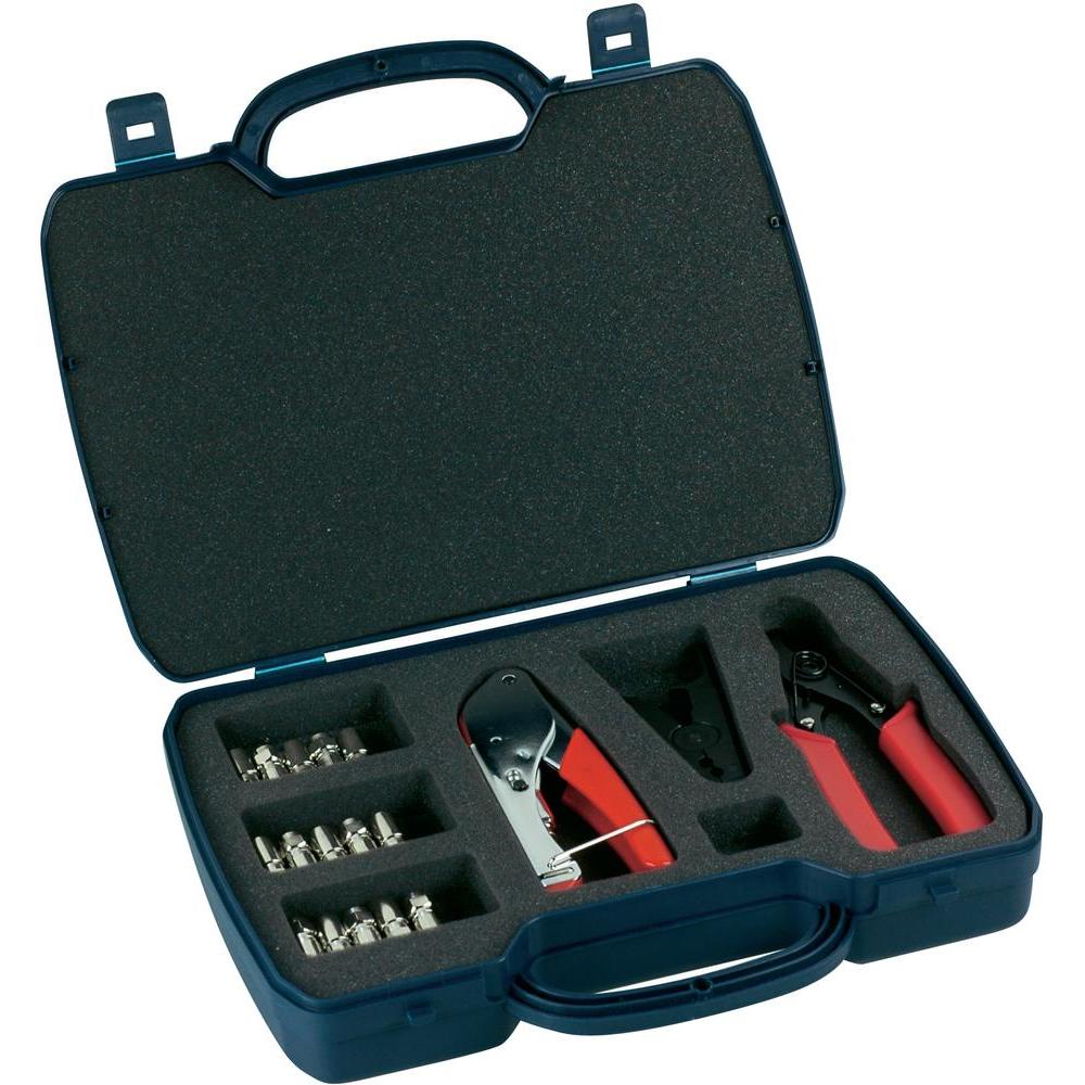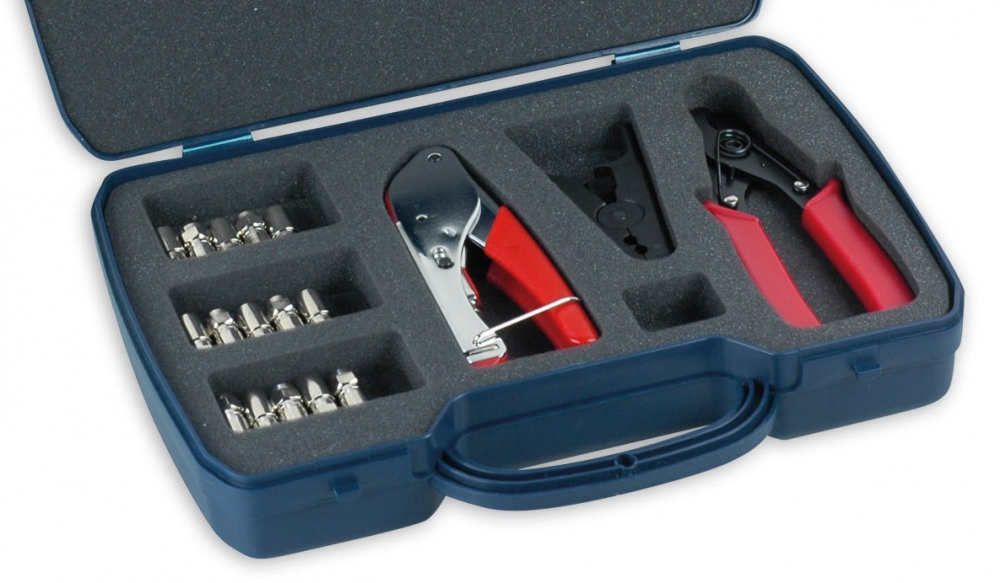 F-Stecker Kompressions-/Verpressstecker Montageset FVS315 216 im Koffer (Kompressionszange/-stecker/Kabelschneider)