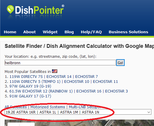 Es gibt mehrere Astra-Satelliten, der für die deutschen Programme ist genau gesagt der Astra 19.2 Grad Ost.bobhauk hat geschrieben:Den Link für die Ausrichtung habe ich gerade getestet, habe den Astra Satellit ausgewählt, war doch richtig oder ?