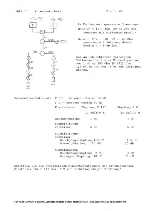 Zum Vergleich aus längst vergangenen Zeiten ohne Sat.-Empfang eine Pegelaufgabe für RFT-Meisterschüler.