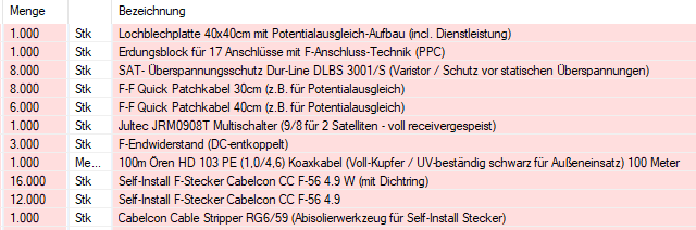 Ab Lager kann ich anbieten 80m + 20m (also 2 Stücke), wäre das ausreichend wenn sie 100m bestellen würden ?Darius hat geschrieben:1x Ören Kabel aussen 100m -> Weshalb 100m? Da der Preis bei 100m signifikant fällt und gegenüber 60m 12EUR mehr kostet. Deshalb diese Entscheidung.