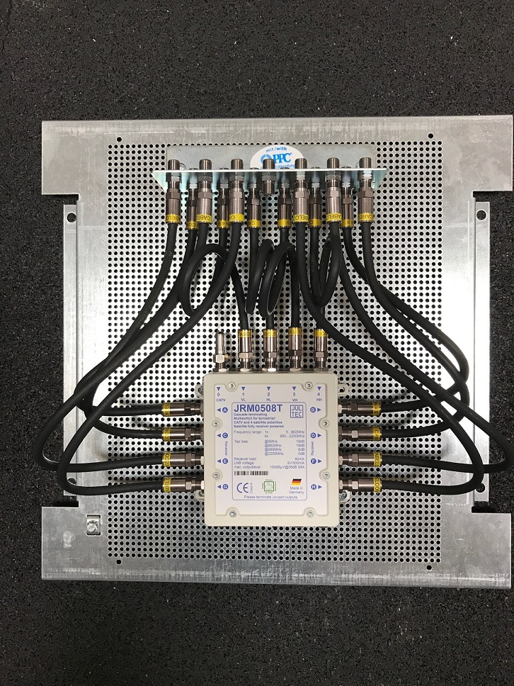 Jultec JRM0508T (5/8 Multischalter voll receivergespeist) im Voraufbau auf Lochblechplatte incl. Potentialausgleich