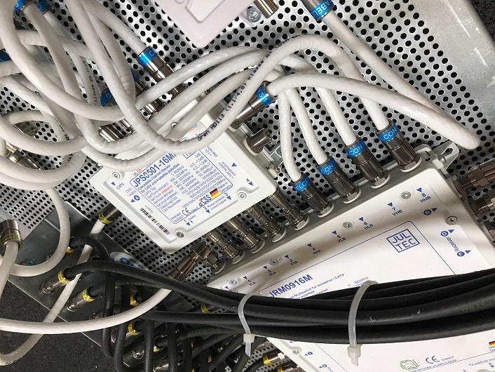 Bildname: Jultec_JRM0916M_JPS0501-16MN_Kaskadenaufbau_Legacy-Unicable_EN50494_Lochblechplattenaufbau_Potentialausgleich_terrestrische_Einspeisung_3