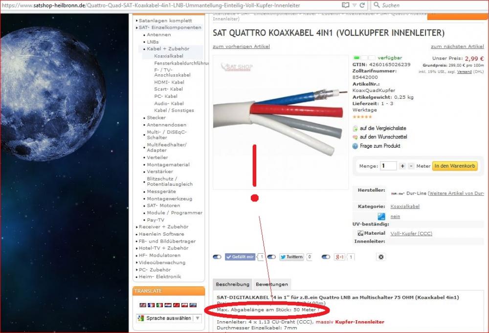 Ich habe mir Gestern eine Schüssel von Triax 88cm gekauft, und im Garten ausprobiert,ich habe zwei Stellen gefunden und an der beste stelle erhielt ich eine Sendequalität von 95%.