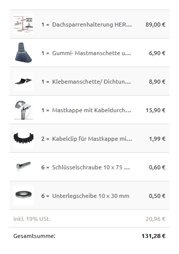 Das passt so für einen Sparrenhalter zu montieren, da gehört aber gleich mehr dazu wie z.B. UV-beständige Koaxkabel da gleich mit rein zu legen für die Vorbereitung der Versorgung.