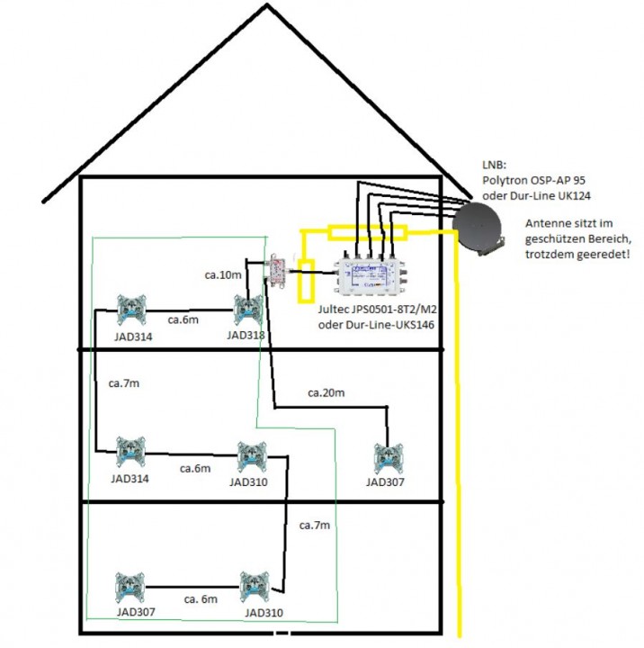 da der vorherige Besitzer meines Hauses nicht viel von Fernsehen gehalten hat, ist dementsprechend keine SAT-Anlage im Haus vorhanden.