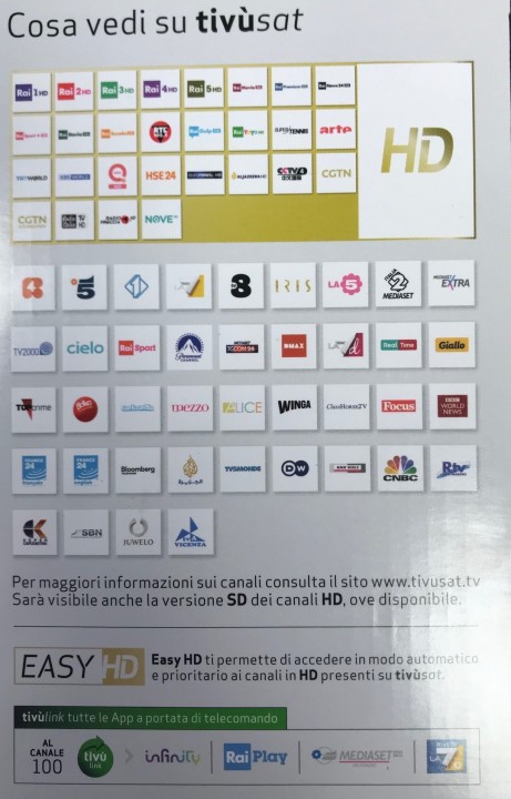 Die Karte muss für den Empfang der italienischen Programmpakete RAI, MEDIASET, LA7 auf der TIVU-Webseite (http://www.tivu.tv/) freigeschaltet werden, hierzu muss auch eine Adresse in Italien angegeben werden. Hierzu muss eine Adresse in Italien angegeben werden und eine talienischen Steuernummer (Codice Fiscale) (*1).
