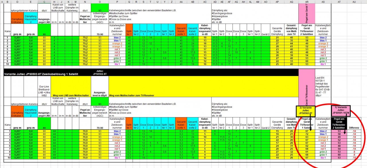 Unicable Planung (Jultec JPS Breitband-LNB Versorgung 2 Satelliten)